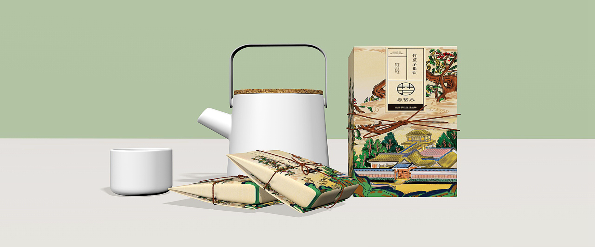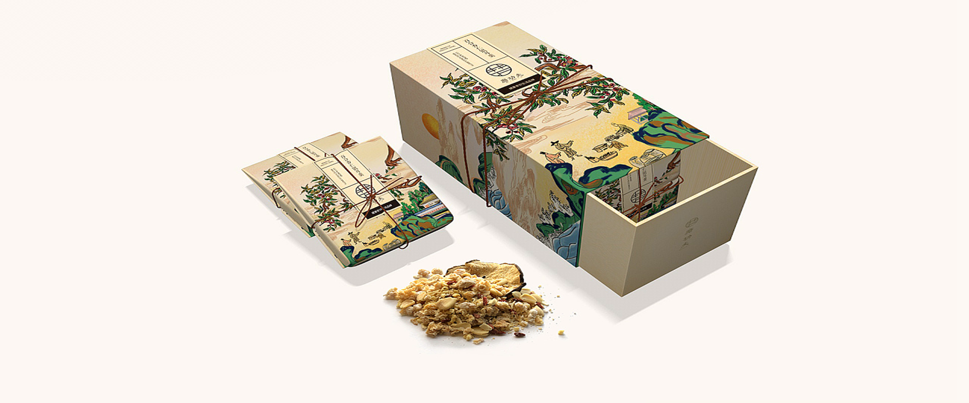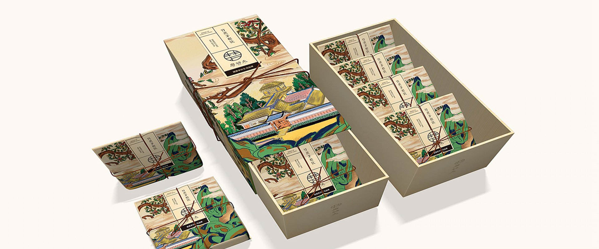 禮盒外的絲帶與整體畫面遙相呼應(yīng),是心意的象征,也是現(xiàn)代“匠心”的呈現(xiàn)。